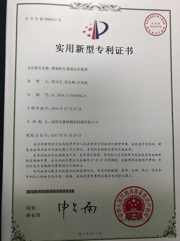 側(cè)面貼長條膜定位裝置