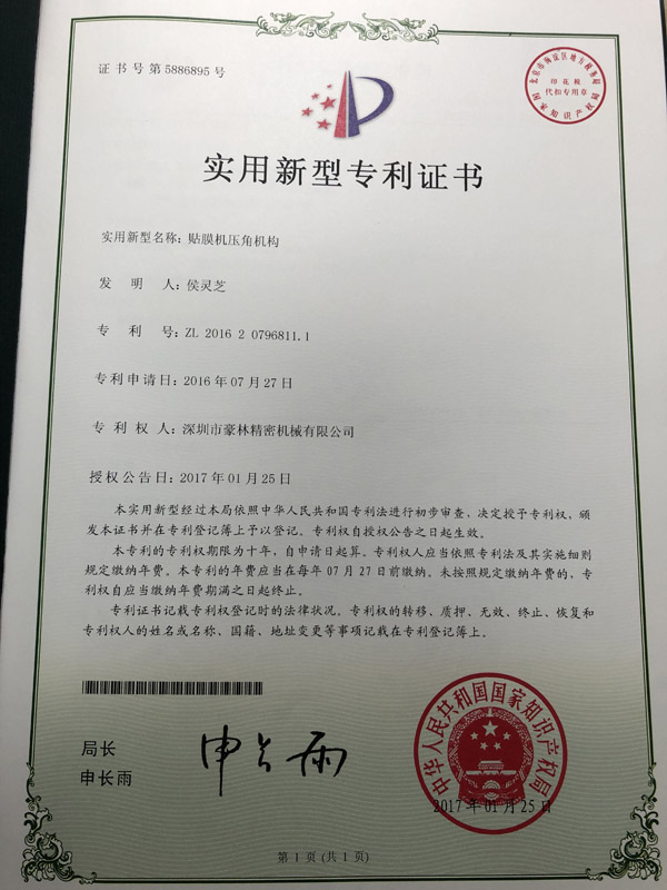 貼膜機壓角機構(gòu)